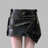 Asymmetrisk svart steampunk-skjørt i skinn med stropper og spenner