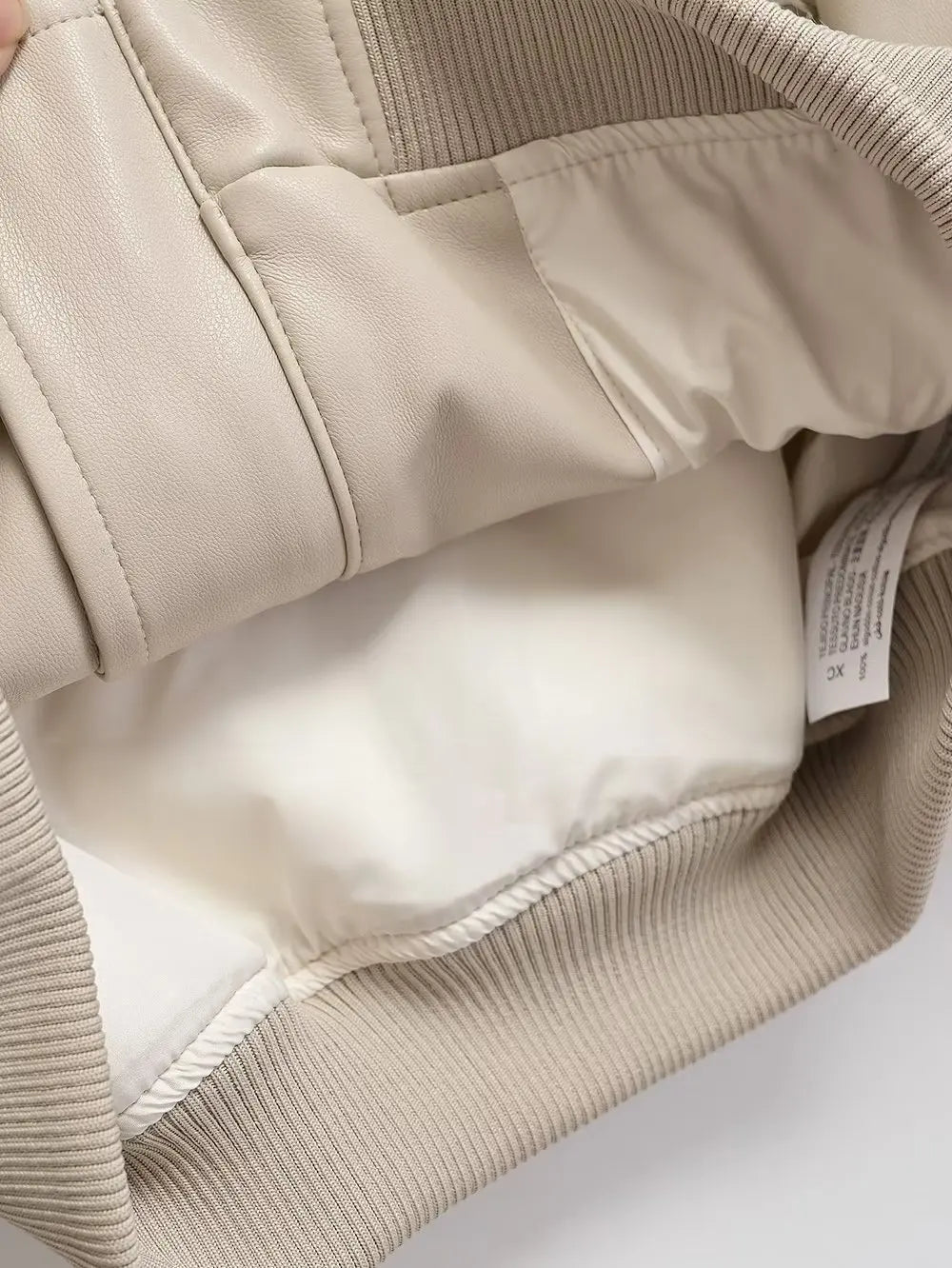 Beige punk rock bomberjakke med glidelåser og ribbestrikkede mansjetter Se alternativer