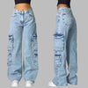 Blå baggy cargo-jeans med lommer i rockstil Se alternativer