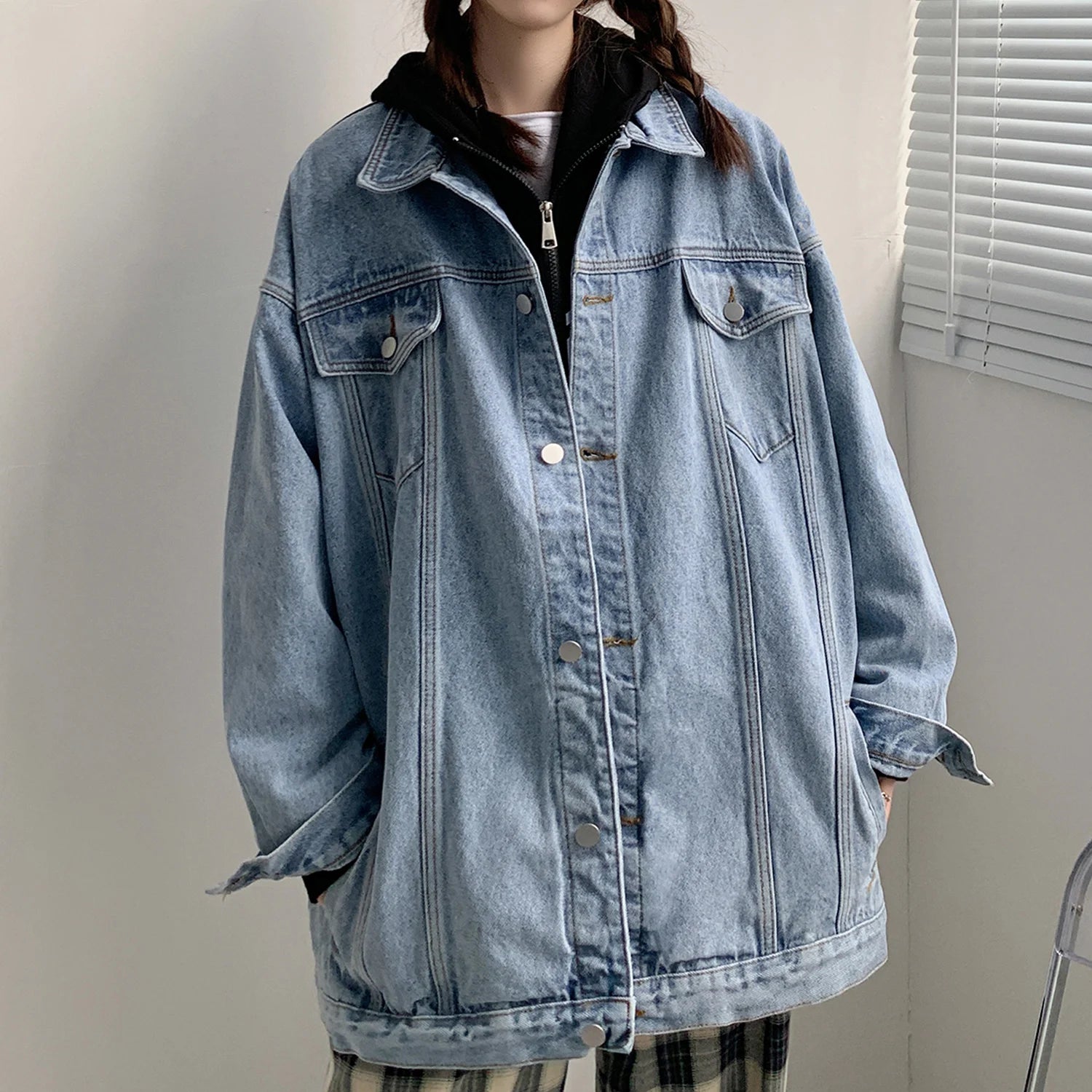 Blå oversized denimjakke Metal med lommer 5XL