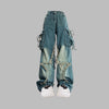 Blå punk jeans med revner og cargolommer