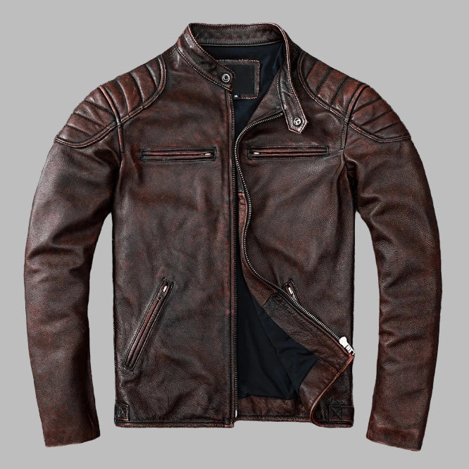 Brun vintage rock skinnjakke med sømmer Se alternativer