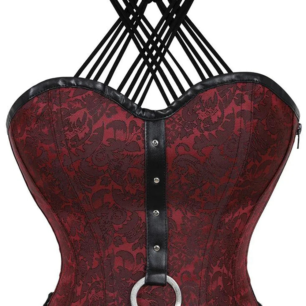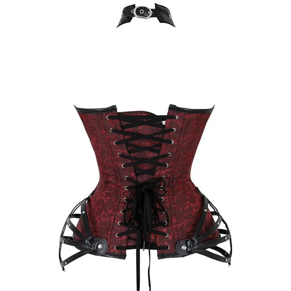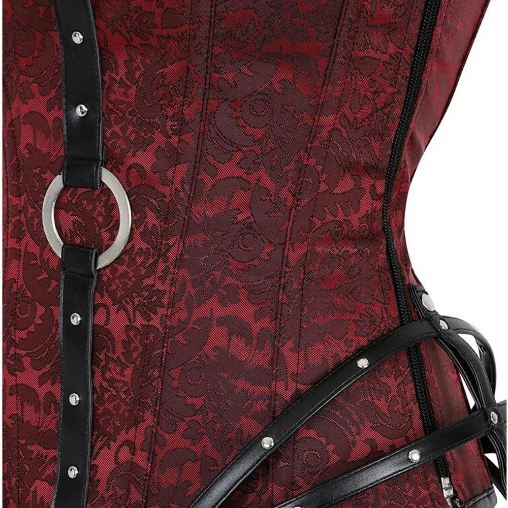Punk rock-korsett med stropper og metallspenner, burgunder 6XL