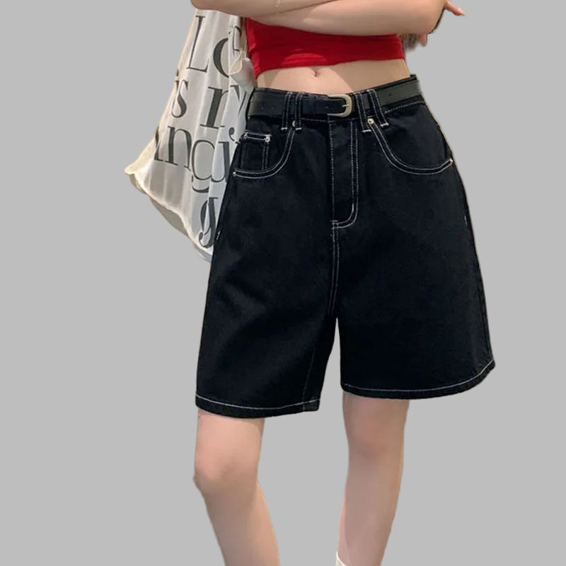 Dame­shorts, svarte, gotiske, oversize med kontrastsømmer i grunge-stil