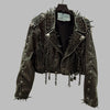 Dame skinnjakke i bikerstil med nagler og kjeder, svart punk goth metal