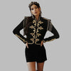Dameblazer i svart militærstil med gullbroderi, vintage steampunk