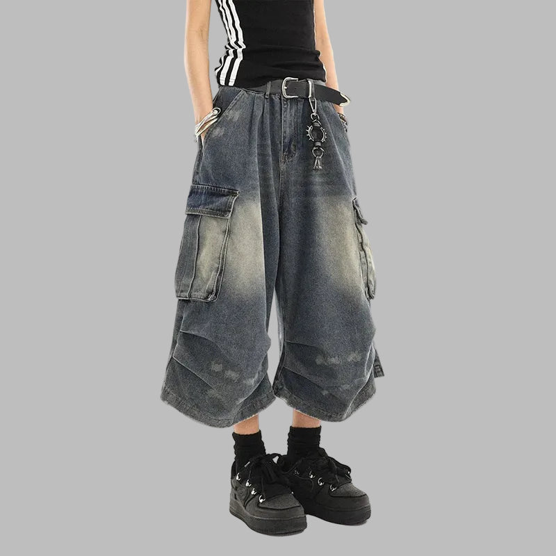 Damegrunge korte, vide cargoshorts i denim