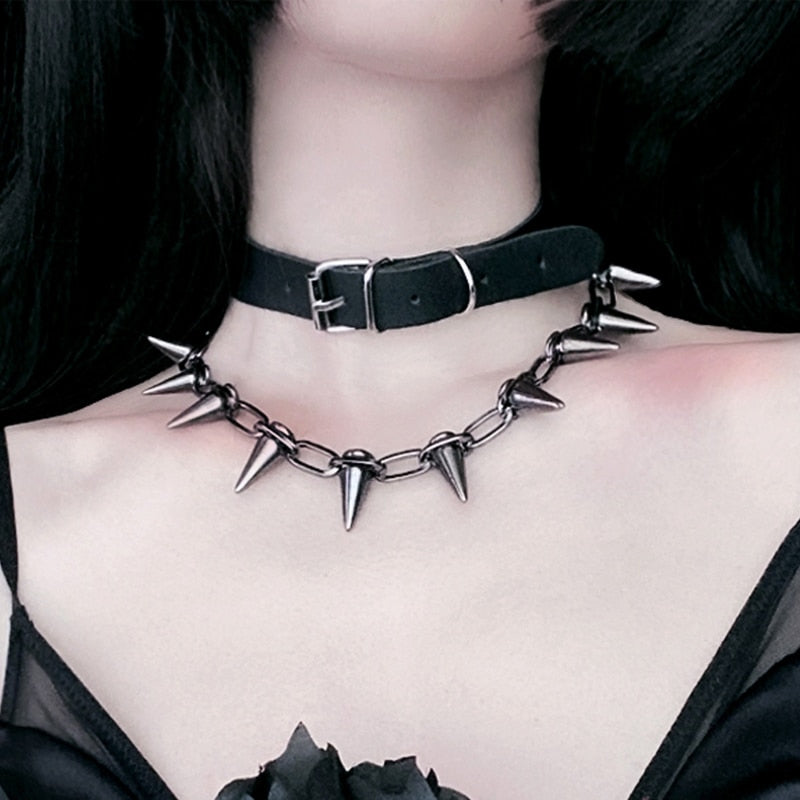 Damehalskjede i gotisk stil med pigg, vegansk skinn 35 cm