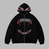 Damehettegenser med glidelås, svart gotisk, med vampyrtenner Se alternativer
