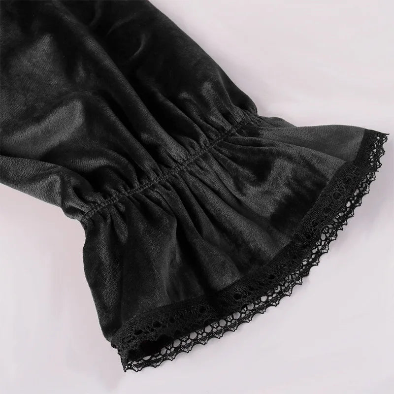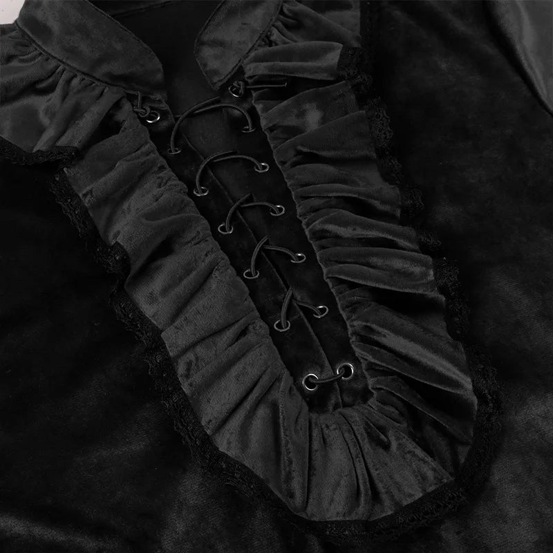 Elegant svart Metal-skjorte med jabot og snøring Se alternativer