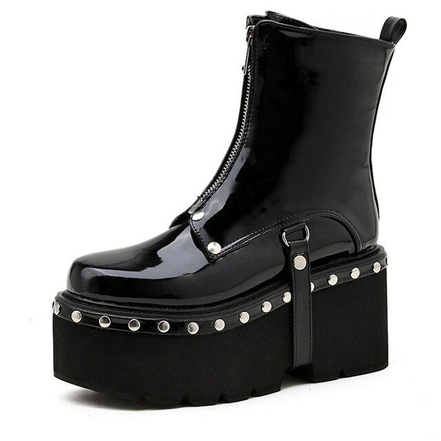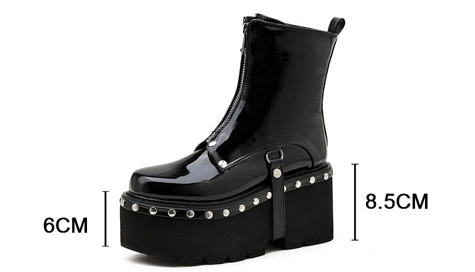 - Materiale: lakkert skinn, glatt polyuretan, metall, gummi
