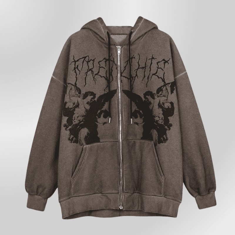 Brun gotisk hettegenser fra 2000-tallet