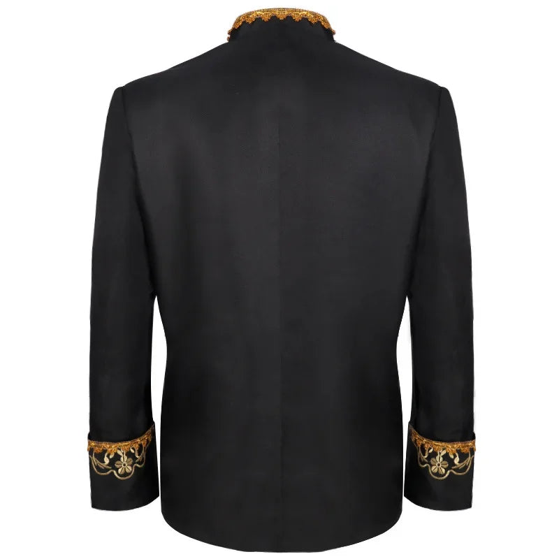 Gotisk imperiefrakk – svart / rød / hvit med hvit broderi
