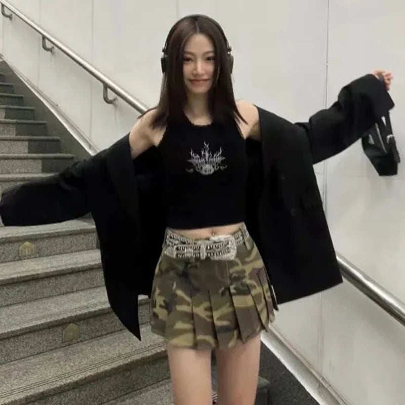 Gotisk miniskjørt i kamuflasjemønster – alternativt plissert skjørt