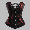 Gotisk steampunk-korsett svart med røde blomster og snøring 6XL