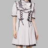 Grå Jirai Kei-kjole med blondeinnlegg og sløyfe L