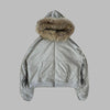 Grå rockhettegenser med pelsfôret hette og tornemønster