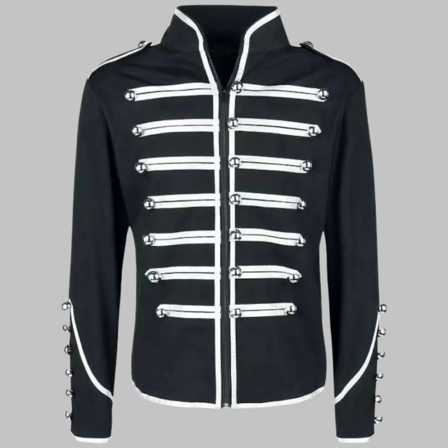 Fordyp deg i en retro-futuristisk verden med denne herrejakken inspirert av steampunk- og gotisk stil. Med høy krage, dekorative knapper og elegant lappesøm er den perfekt til temafester, kostymeball, konserter eller ganske enkelt som et originalt innslag i hverdagsantrekket.