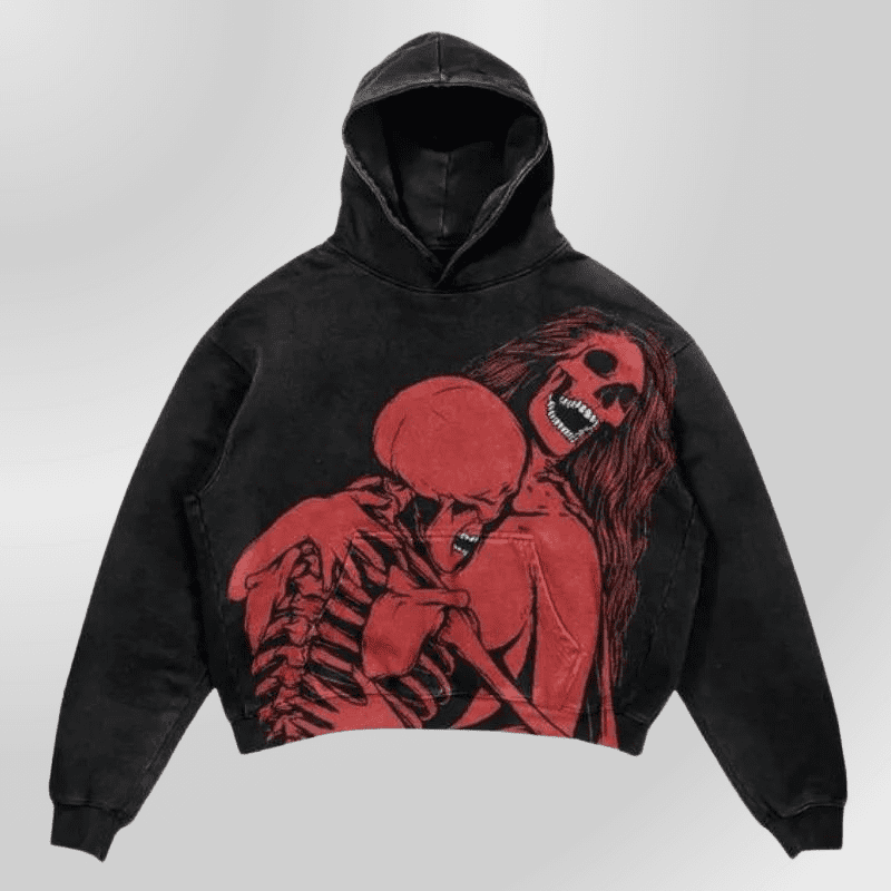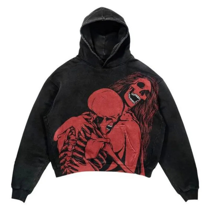 hettegenser Grunge med skjelettmotiv og hette – Love