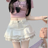 Hvit denimminiskjørt i Jirai Kei-stil med blondevolang