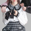 Hvit gotisk bluse med blondekrage og stor sløyfe Lolita Jirai Kei