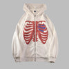 Hvit punk rock hettegenser med glidelås og ribbe-anatomi motiv XXL
