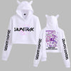 Hvit Jirai Kei-cropped hettegenser med horn HUNTRX Demon Hunters