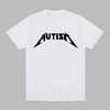Hvit Metal Autism T-skjorte med svart rockelogo