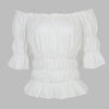 Hvit punk rock-bluse med off-shoulder og puffede ermer
