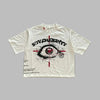 Hvit punk‑T-skjorte med øye- og siktemotiv