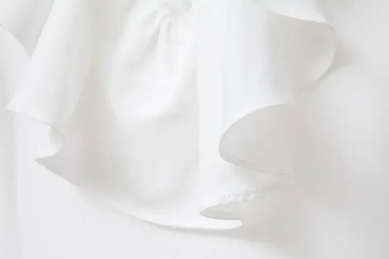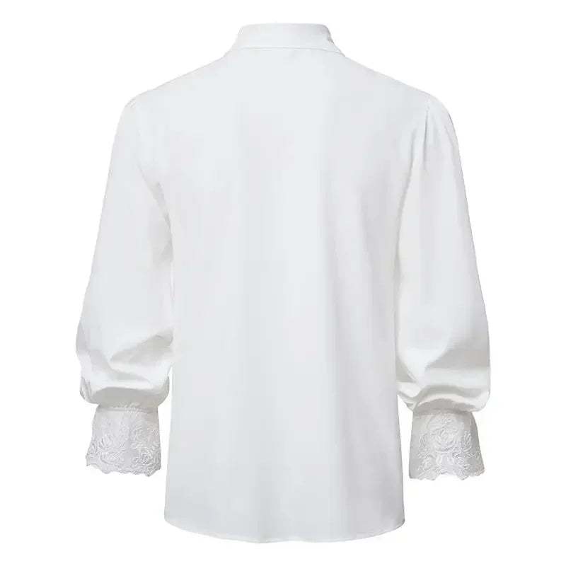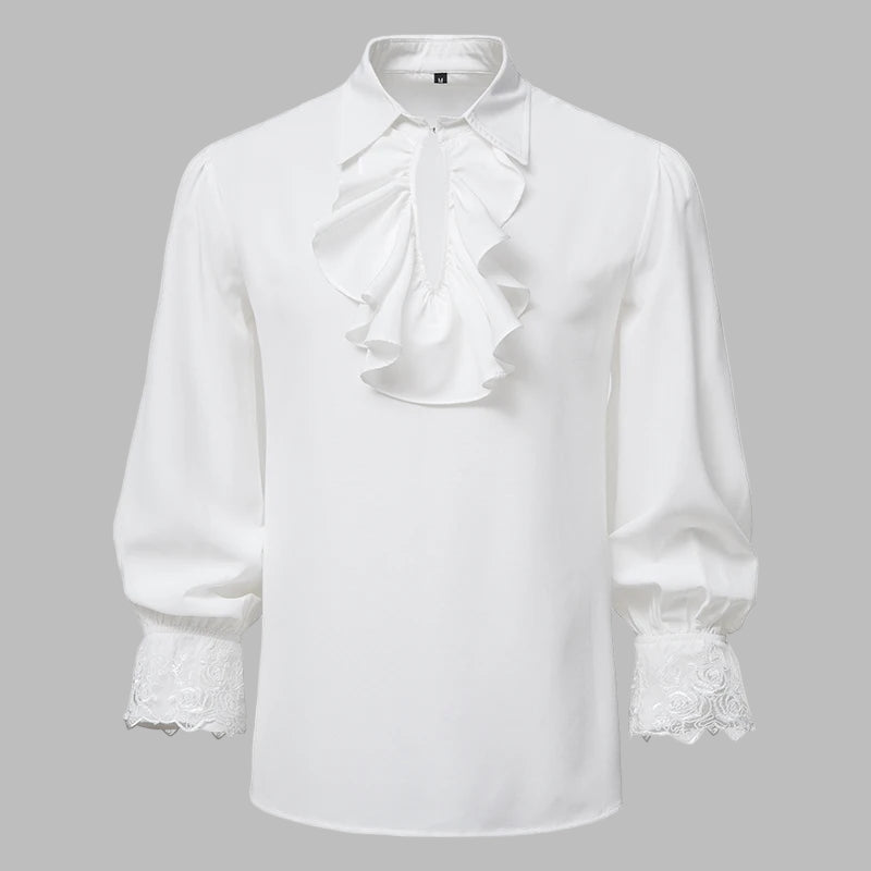 Hvit rockskjorte med blonde­mansjetter og jabot