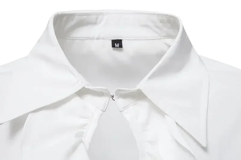 Hvit rockskjorte med blonde­mansjetter og jabot XXL