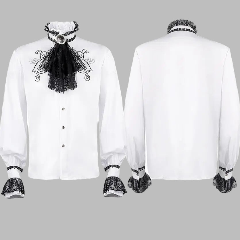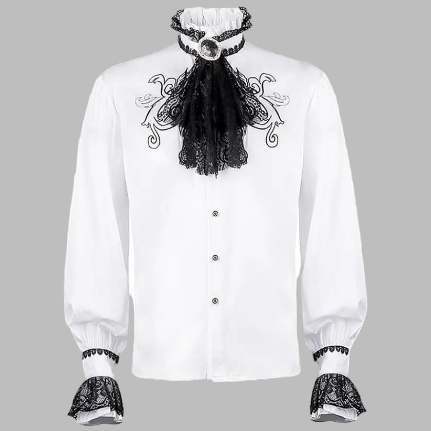 Hvit steampunk-skjorte med blonde detaljer og jabot