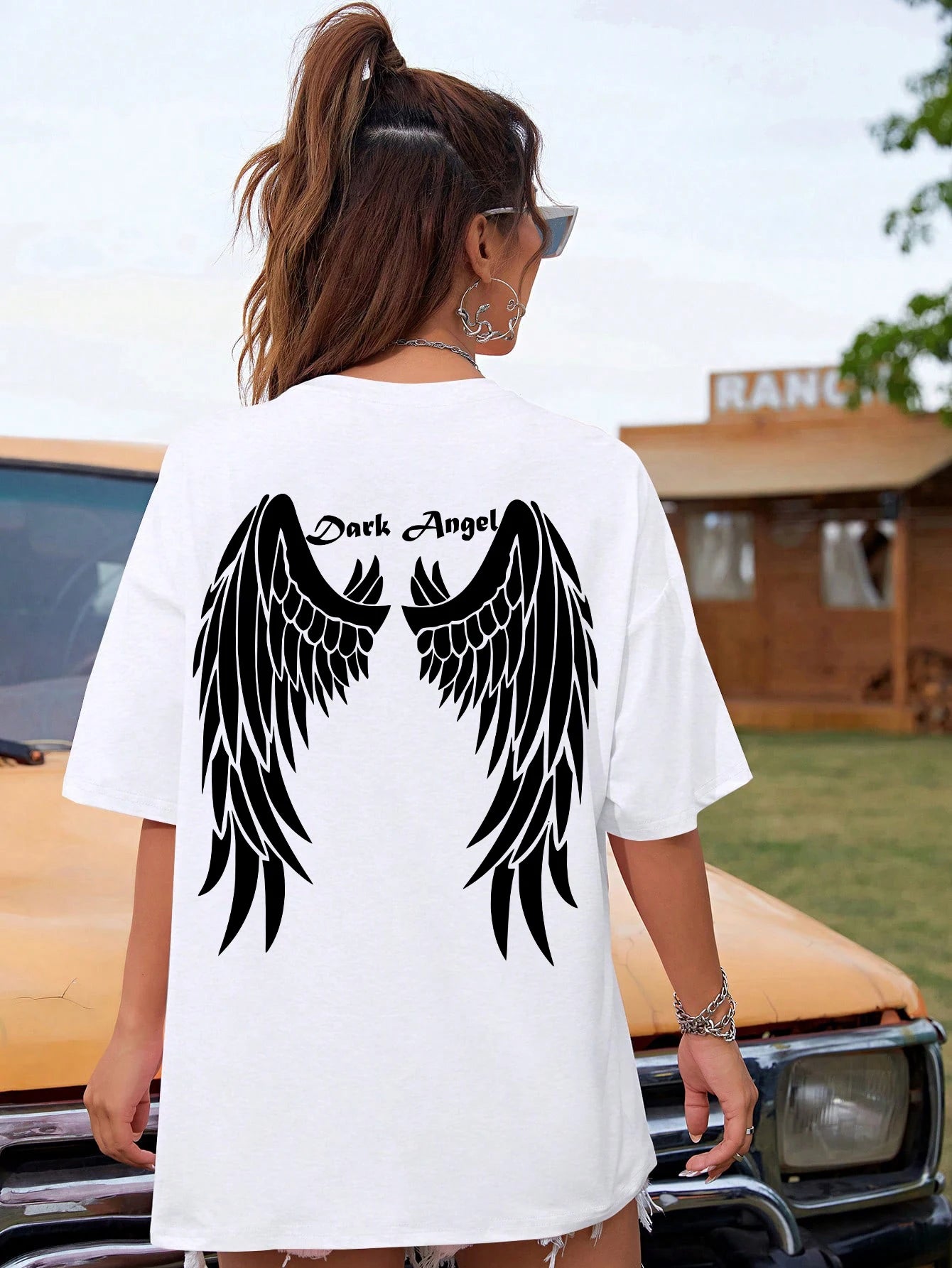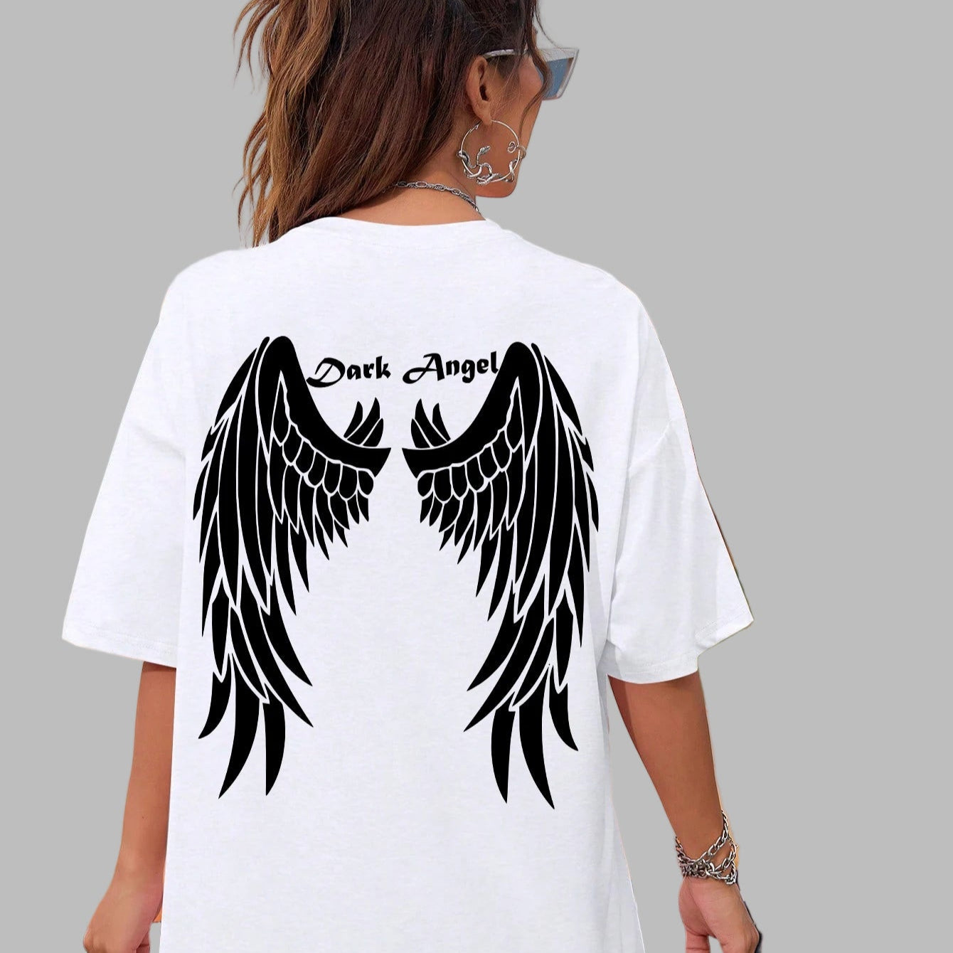 Hvit T-skjorte med svarte punkvinger Se alternativer
