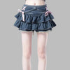 Jeansminiskjørt med volanger og rosa bånd, punk rock-stil