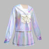 Jirai Kei hvitt holografisk sjømannssett med sløyfe