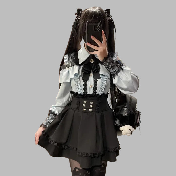 Jirai Kei-sett med svart blondevolang Se alternativer