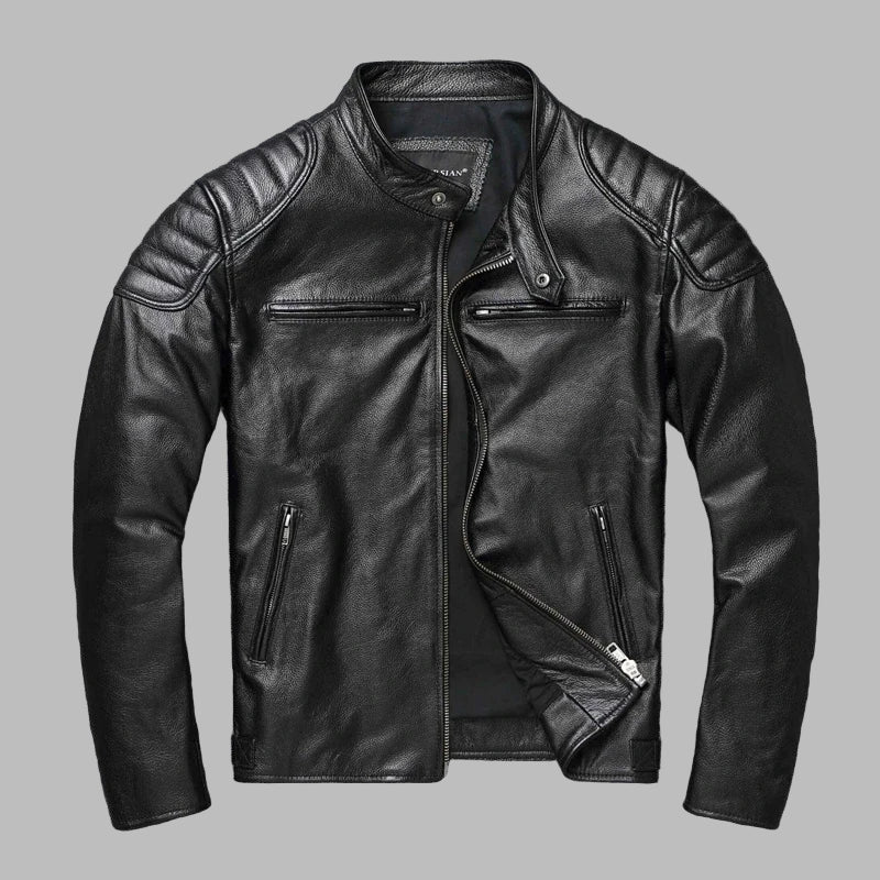 Klassisk svart skinnjakke i punk rock-stil for menn