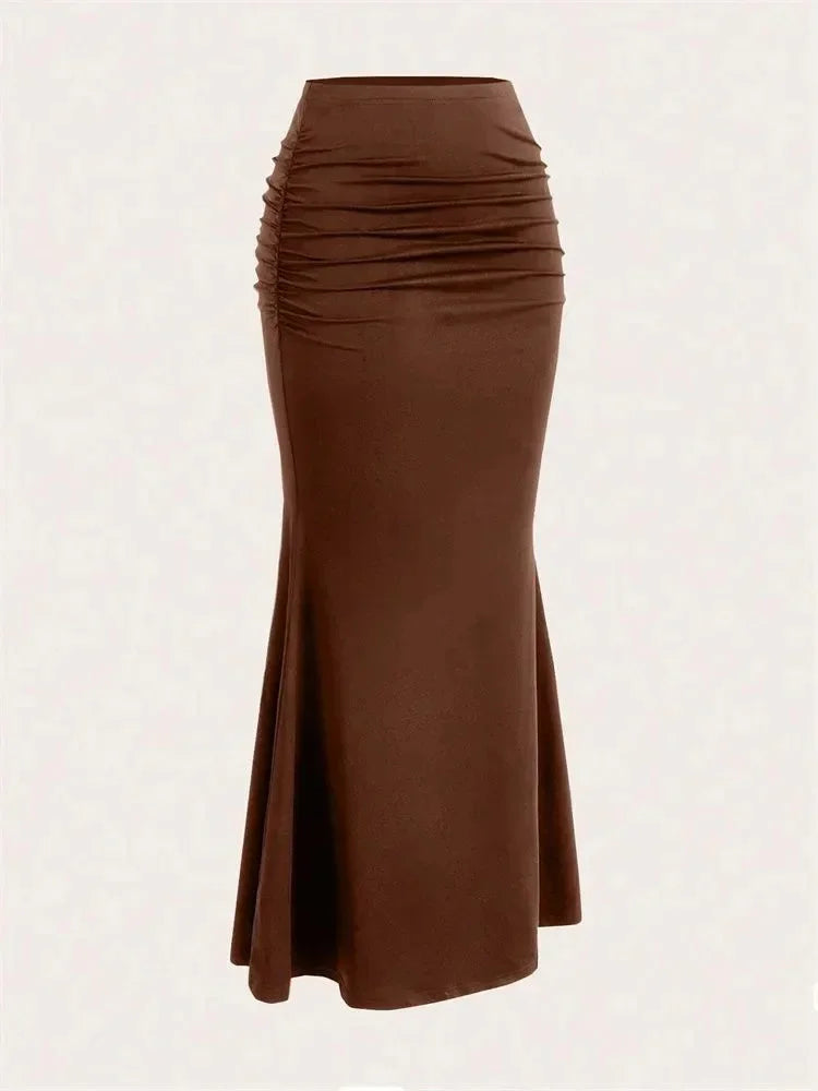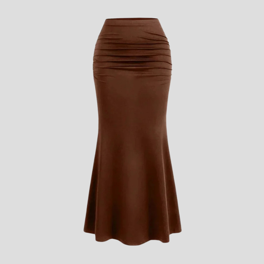 Lang brun havfrueskjørt med rynket midje Se alternativer