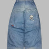 Lang denimskjørt i grunge-stil med trykk blå XXL
