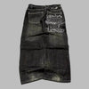 Lang denimskjørt Metal med tekst, svart XXL