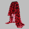 Rock lang asymmetrisk rød skjørt med svarte blomster 6XL