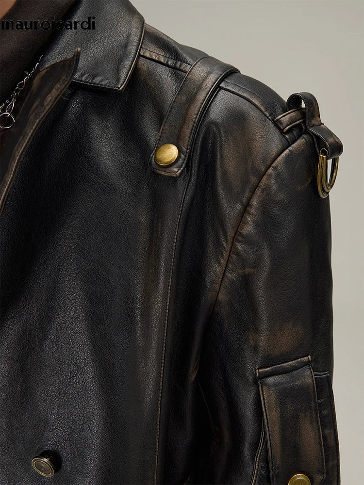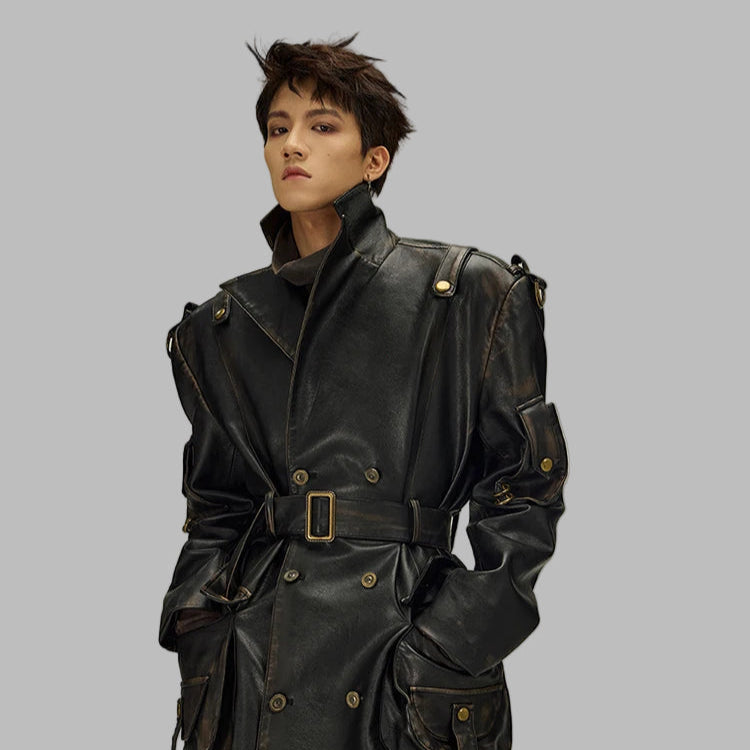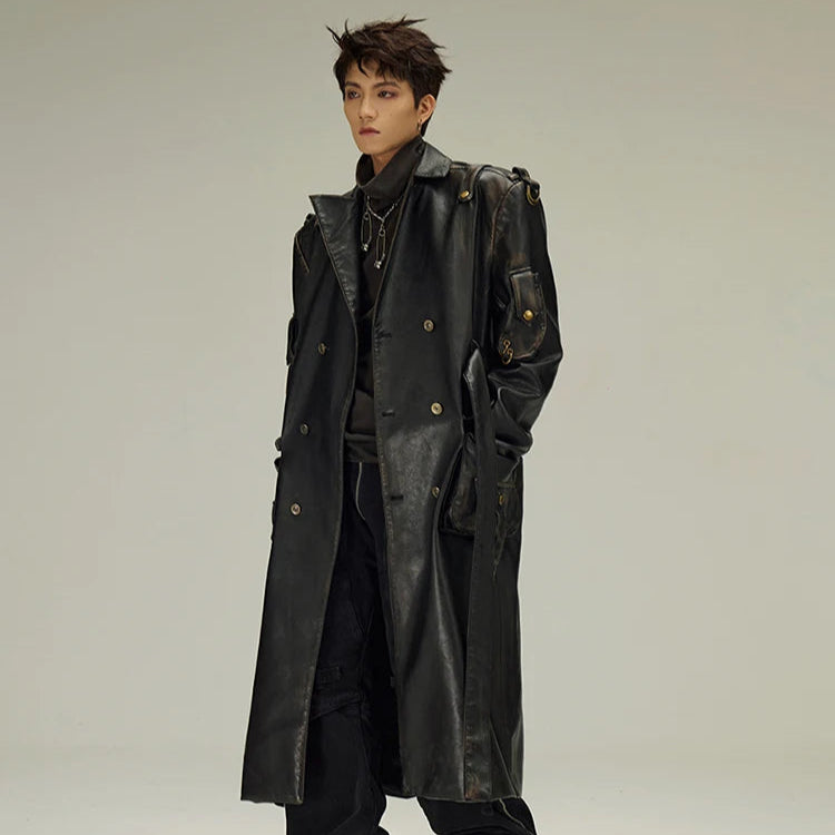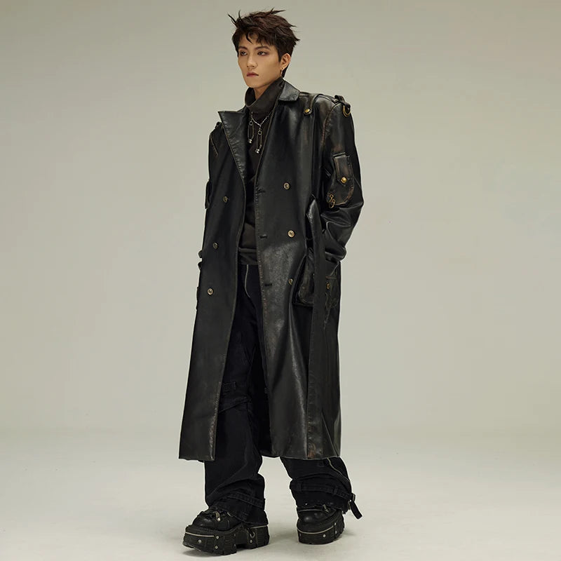 Lang svart gotisk skinnfrakk i alternativ stil Se alternativer