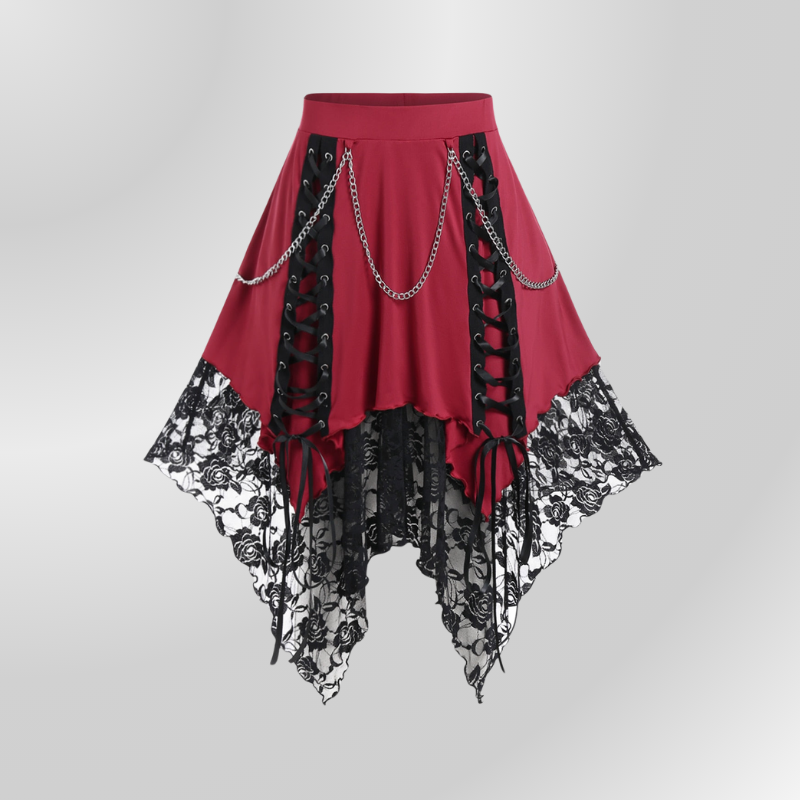 • Snøringsdetaljer: Snøringsdetaljene gir skjørtene et snev av originalitet og raffinement, og skaper en moderne og iøynefallende gotisk look.