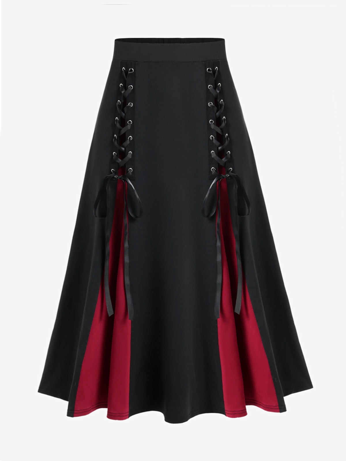 Lang gotisk skjørt i svart og rødt