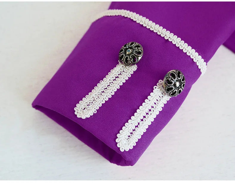 Lilla steampunkfrakk med hvite dekorative snorer herre 4XL