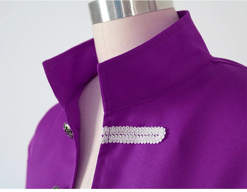 Lilla steampunkfrakk med hvite dekorative snorer til herre
