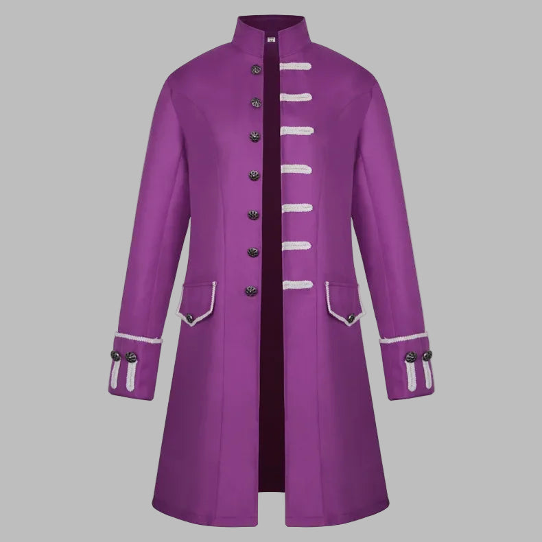 Lilla steampunkfrakk med hvite dekorative snorer, herre