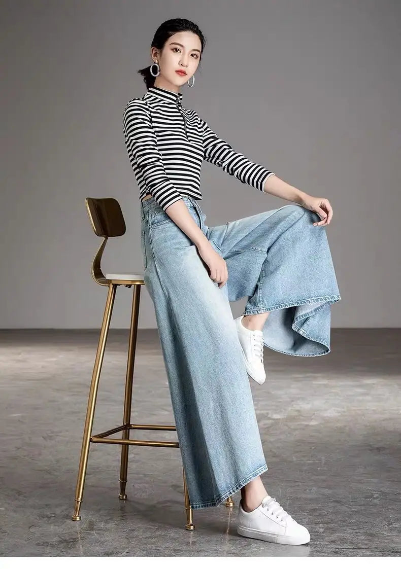 Lyse blå wide leg jeans i oversized rockestil Se alternativer