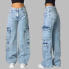Lyse jeans-cargobukser i rockstil med sidelommer